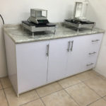 Descripción: Suministro de muebles con formica con acabado brillante y cubierta reformada color tipo granito.